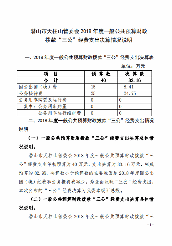 潜山市天柱山管委会2018年度一般公共预算财政拨款“三公”经费支出决算情况说明