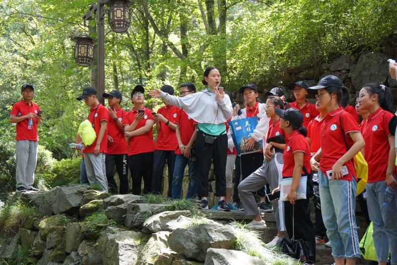 “天柱一峰擎日月,洞门千仞锁云雷”,白居易的诗曾令无数后人对天柱山充满遐想。在这个风景如画、山川秀丽的地方,营员们游走于山水间,见识了千形百态的奇峰异石和成群瀑布。同时,在安徽省地质调查院吴维平教授的带领下,营员们了解了天柱山独特的花岗岩地貌以及飞来石的形成过程等,不仅享受了一场视觉盛宴,更了解了背后的科学价值。
