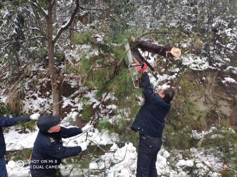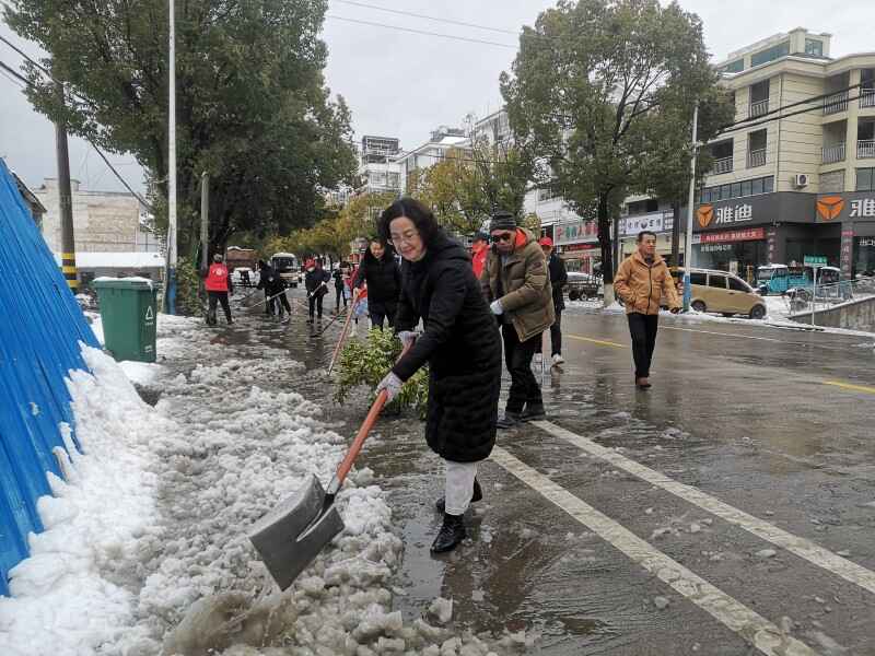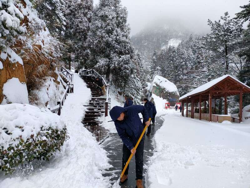 2月7日、8日,在风景区纪检监察工委书记江霞和旅游公司领导班子的带领下,天柱山人化身铲雪小分队,在城区包保网格南岳路段、景区通景公路、索道公司、天柱山庄等经营场所同时开展冰雪大作战。