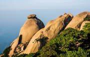特色: 在安徽天柱山风景区,有一座海拔1400多米高的天柱山第二高峰,下粗上细,就像是一只锥子,倒插在地上。顶端有一圆形巨石压在锥子尖顶,这就是飞来峰。无论是近观,还是远眺,它都似是一个仙人,穿着法衣,戴着冒子,端庄肃立,作法镇妖,所以飞来峰又名仙人戴帽。 天柱山原是茫茫大海,各种妖怪为争夺领域,各自故弄玄虚,显示自己的一技之长,搅得波涛汹涌,狂风大作,巨浪翻天.即使是风平...