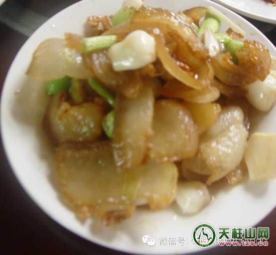 特色: 石耳炖老鳖 特点:汤清、味鲜香、鳖酥烂,具有清凉驱火之功效。天柱农家腊肉 农家腊味——柴火蒸腊肉(当地农人自养的黑公猪肉)